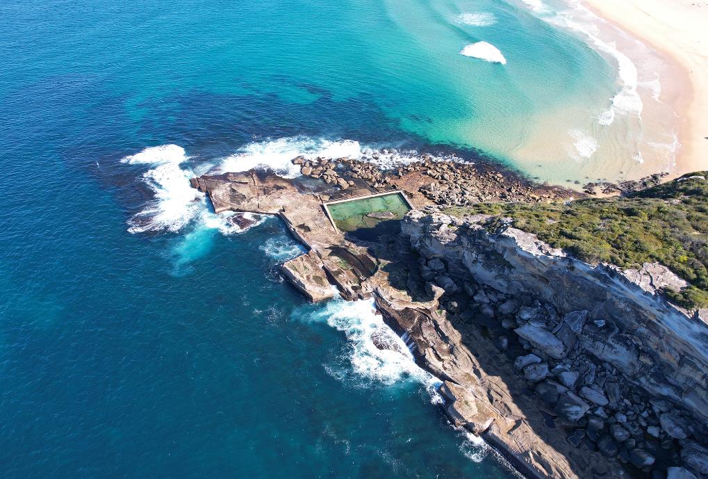 这是2024年7月23日拍摄的澳大利亚悉尼北部海岸线的一处岩石泳池(无人机照片)。新华社发(梁钰摄)