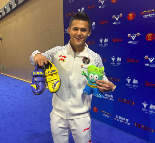 有趣的是,朱尼安夏在激烈的比赛间隙,还换了一次鞋,把自己的举重鞋换成了中国队战靴,鞋面上赫然签着曾在巴黎奥运会上与其争夺金牌的中国选手石智勇的名字。“这双鞋是石智勇送给我的,他是举重传奇人物,我们是非常好的朋友。”朱尼安夏告诉记者。