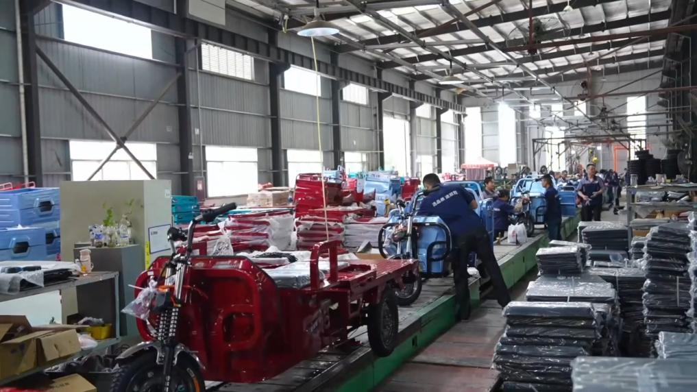 近日,在四川眉山天府新区双胜新能源车业有限责任公司的生产车间流水线上,工人们正紧锣密鼓组装一批即将发往非洲、东南亚的电动三轮车。