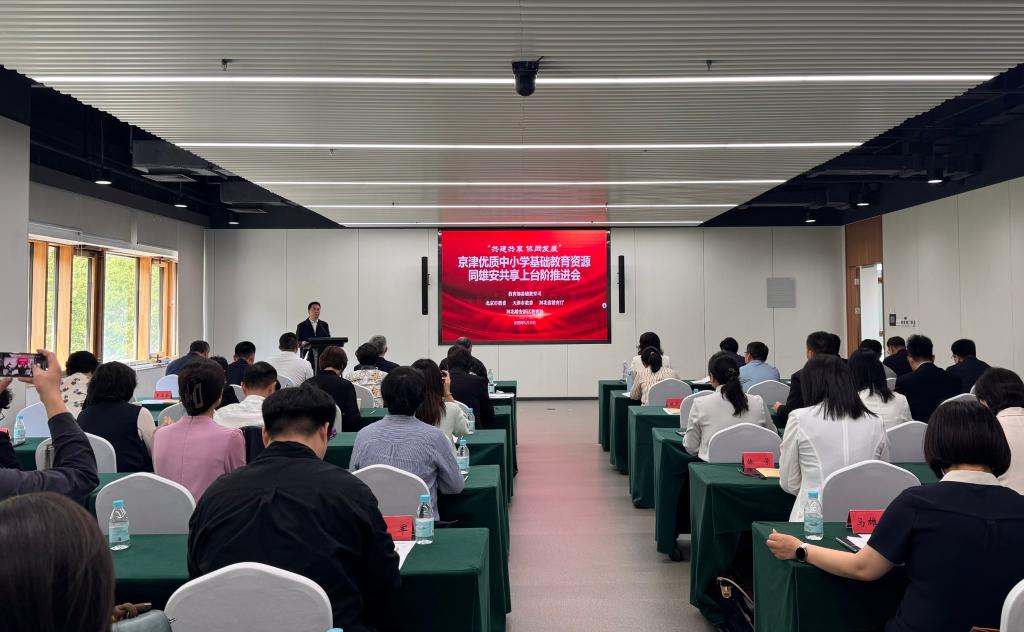 5月15日,教育部、京津冀三地教育部门在雄安新区联合举办京津优质中小学基础教育资源同雄安共享上台阶推进会,进一步部署推动京津优质基础教育资源同雄安共享新举措。