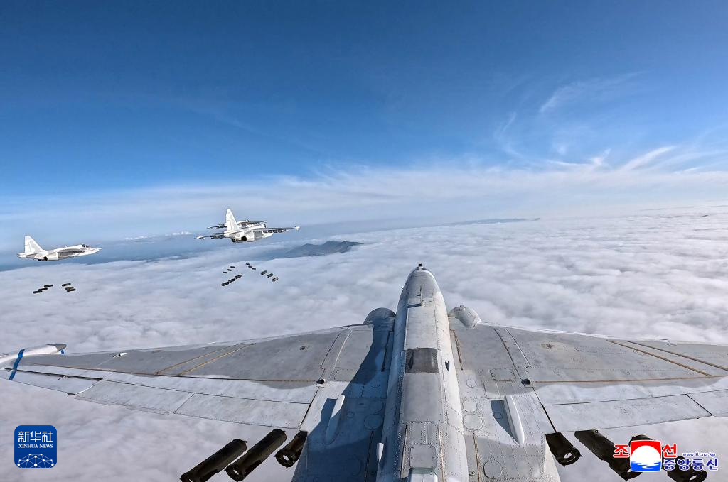 这是朝中社发布的朝鲜空军战机进行轰炸训练的画面。新华社/朝中社