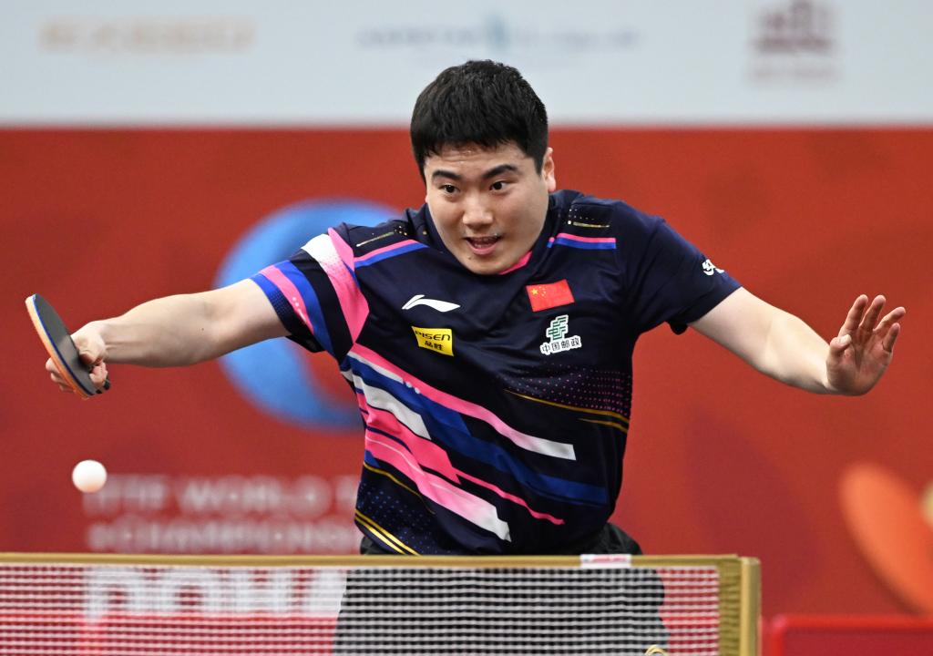 5月17日,梁靖崑在比赛中回球。新华社记者 贺长山 摄