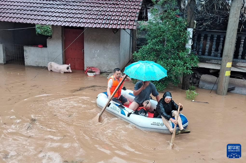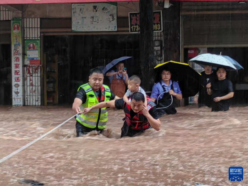 5月22日,在湖南省沅陵县七甲坪镇,救援人员组织涉险群众转移。新华社发