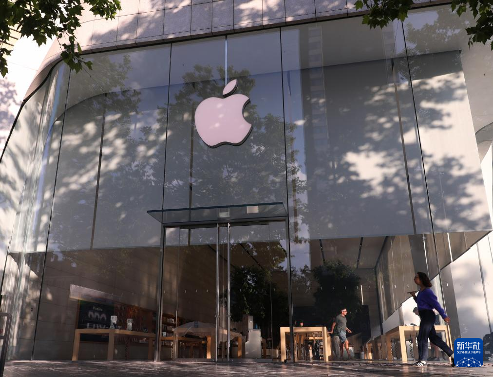 这是5月23日在比利时布鲁塞尔拍摄的一家苹果门店。新华社记者 赵丁喆 摄