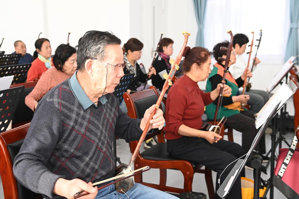 2024年11月20日,在甘肃省嘉峪关市老年大学,老年学员学习二胡演奏。 新华社记者 范培珅 摄