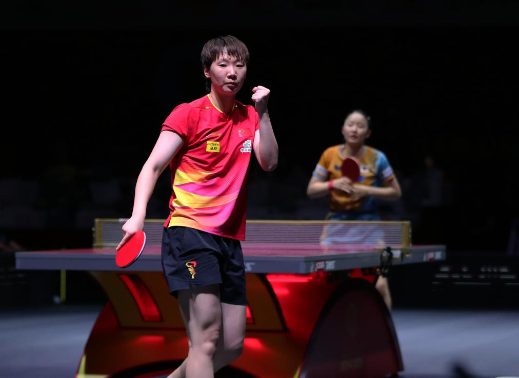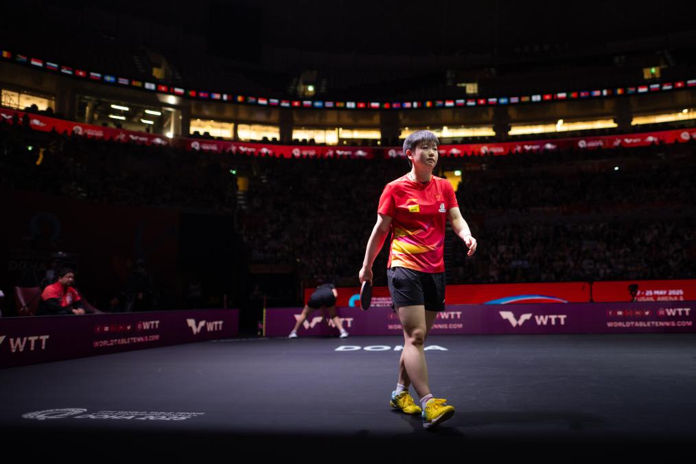 5月23日,孙颖莎在比赛中。新华社记者 肖艺九 摄