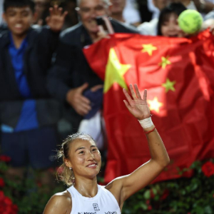 5月14日,在意大利罗马举行的WTA1000网球罗马站女单四分之一决赛中,中国选手郑钦文2:0战胜白俄罗斯选手萨巴伦卡,晋级半决赛。新华社记者 李京 摄
