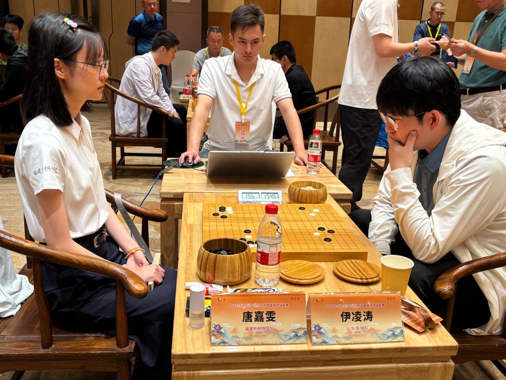 赛场上唯一的女棋手、福建刺桐棋院队的唐嘉雯六段执黑中盘负于山东围棋队的伊凌涛八段。但“升班马”福建刺桐棋院队凭借陈豪鑫六段爆冷击败范廷钰九段,最终2:2战平山东围棋队,取得1个积分。