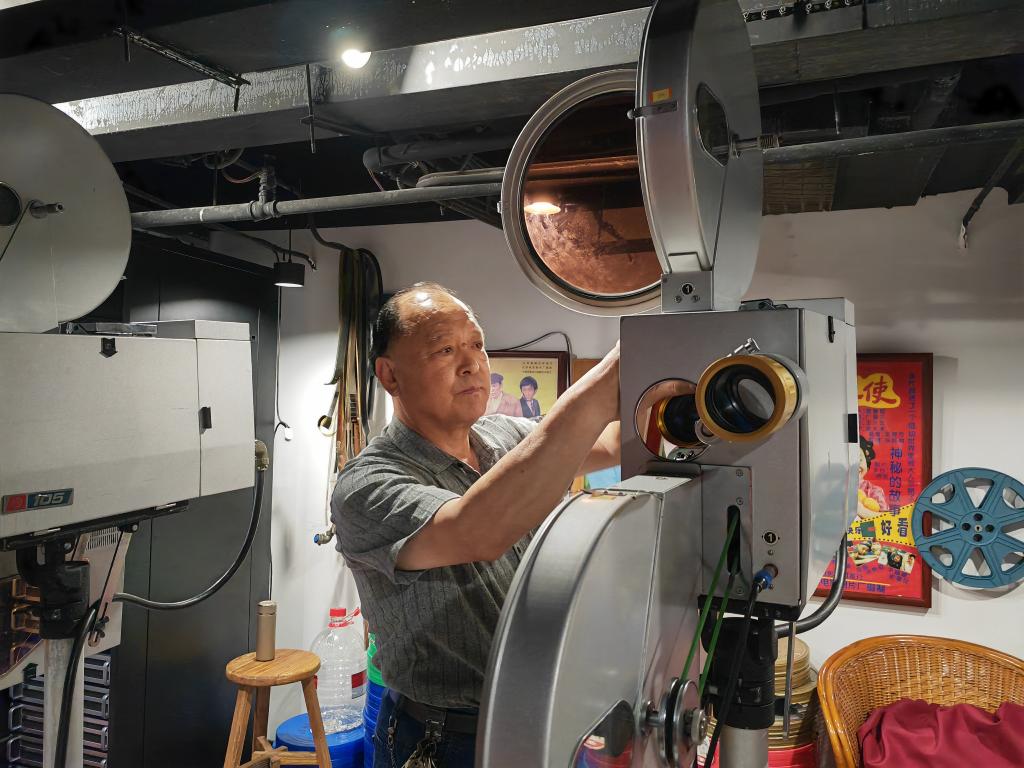在光影琅琊·中国百年电影文化体验馆,馆长巩西吉正在调试老式电影放映机。新华社记者刘铮 摄