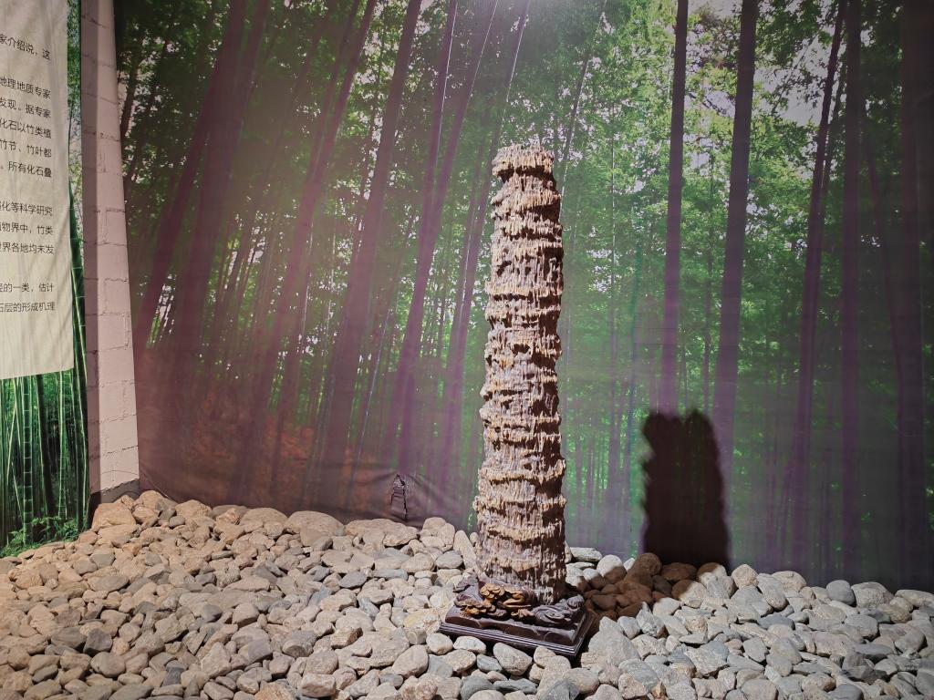 在原木标本展厅,一块跨越万年时光的竹化石静静陈列。灯光下,竹竿依旧挺拔,竹节棱角分明,叶片脉络甚至细胞纤维都清晰可辨。“这些木头会说话,它们在讲述地球的故事。”姜开峰说。