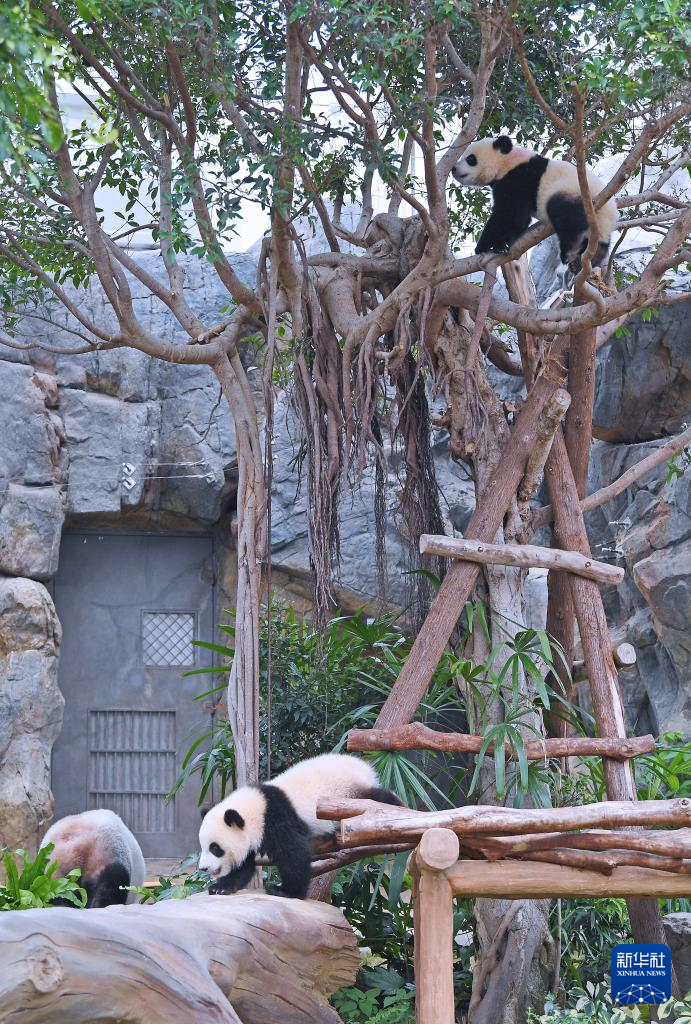 香港海洋公园表示,延伸的栖息地提供更丰富的活动空间,让“加加”“得得”探索更丰富多样的环境,进一步锻炼各种生活技能,让访客可多角度认识更多大熊猫的自然行为。展馆中间区域成为大熊猫的“游戏室”,护理员在那里设置更多种类的环境丰容物,为大熊猫龙凤胎宝宝提供更多身体、感官和认知刺激,也可让妈妈“盈盈”在高地区域享受独处的自我休息时间。