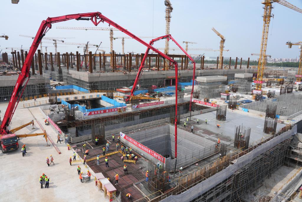 记者从中国铁路上海局集团有限公司获悉,5月27日,东方枢纽上海东站地下工程站场区最后一块顶板浇筑完成,上海东站地下工程站场区主体结构完工,项目建设取得重大进展。