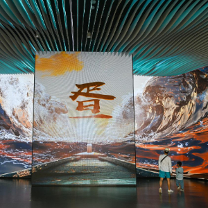 5月13日,游客在海南疍家博物馆观看展现疍家渔排底部水产养殖的动画。