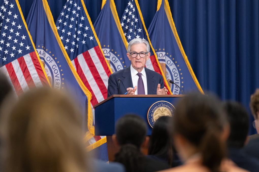 5月7日,美国联邦储备委员会主席鲍威尔在华盛顿出席记者会。新华社记者胡友松摄