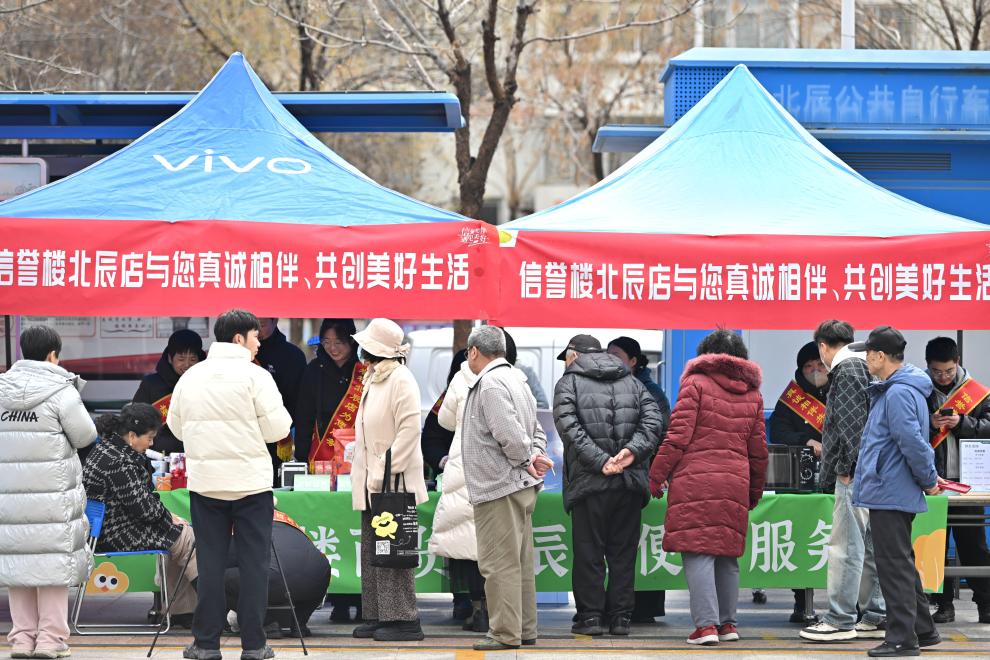 3月28日,天津市北辰区居民在活动现场选购消费品。新华社记者 李然 摄