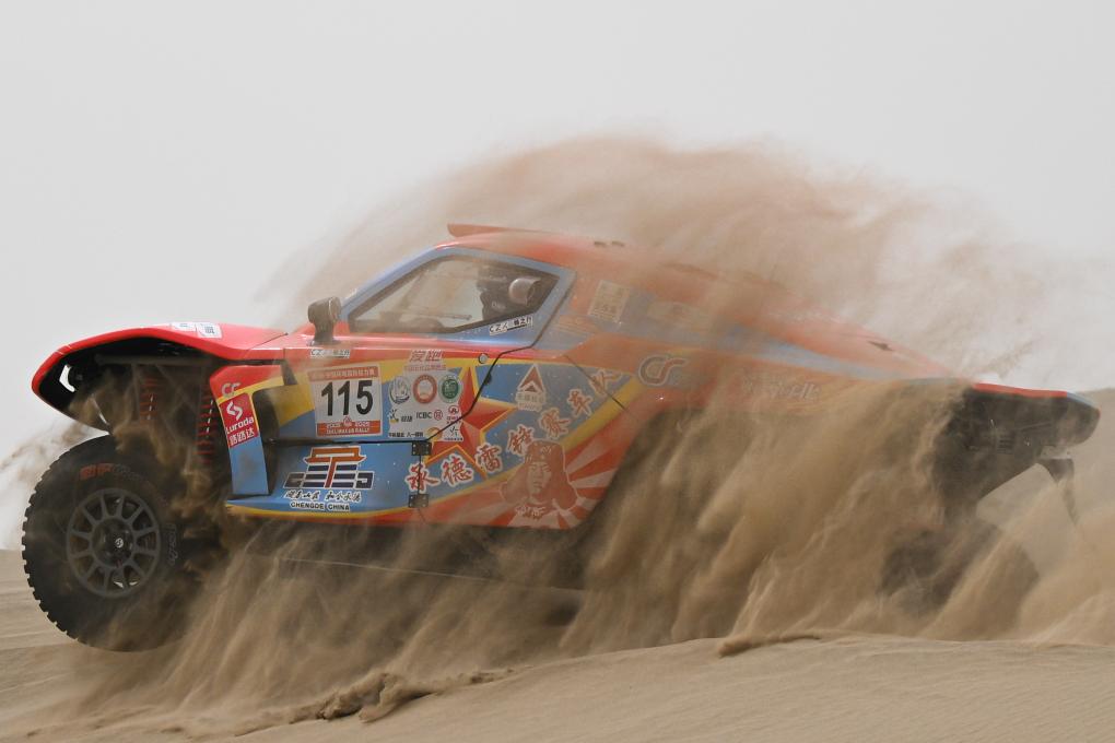 ↑6月1日,鼎新铜业沸铁拉力车队车手张仟岳佟在第十赛段比赛中。新华社记者 辛悦卫 摄