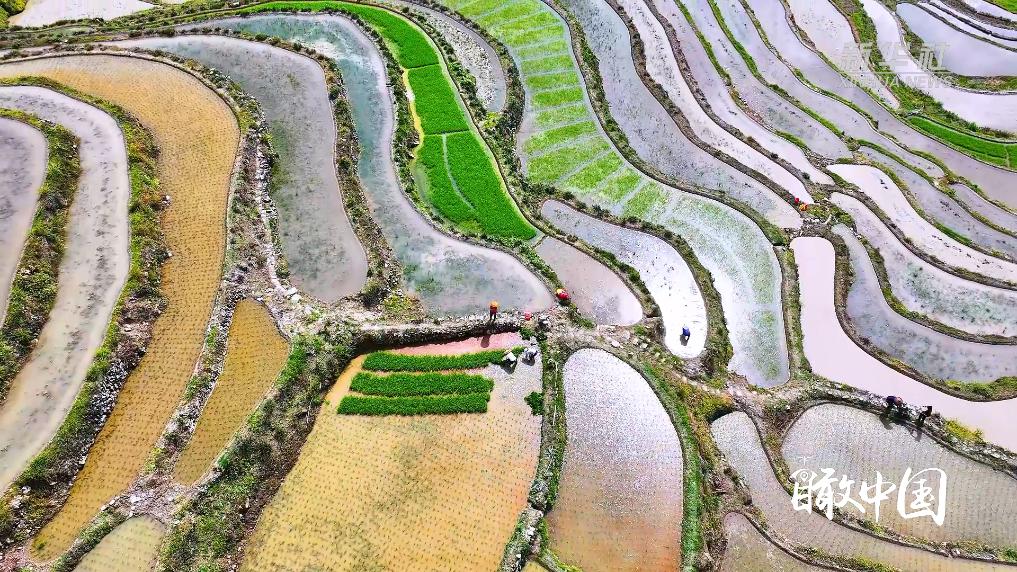 初夏时节,位于湖南省东安县舜皇山腹地的塘家梯田完成蓄水,梯田水满田畴,如链似带,与青山、村落、云雾相映成趣,美不胜收。