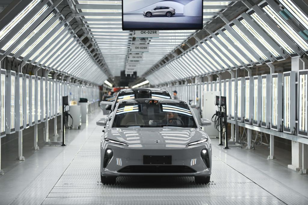 这是在安徽省合肥市新桥智能电动汽车产业园蔚来第二工厂拍摄的新能源汽车生产线(2024年5月9日摄)。新华社记者 张端 摄