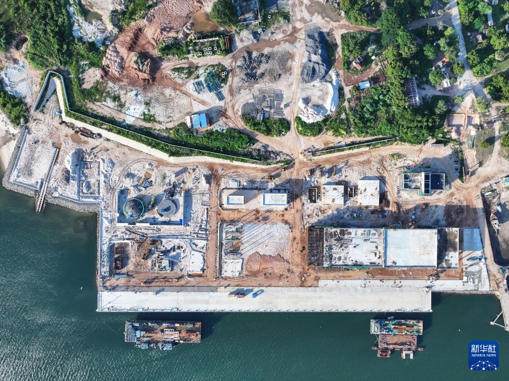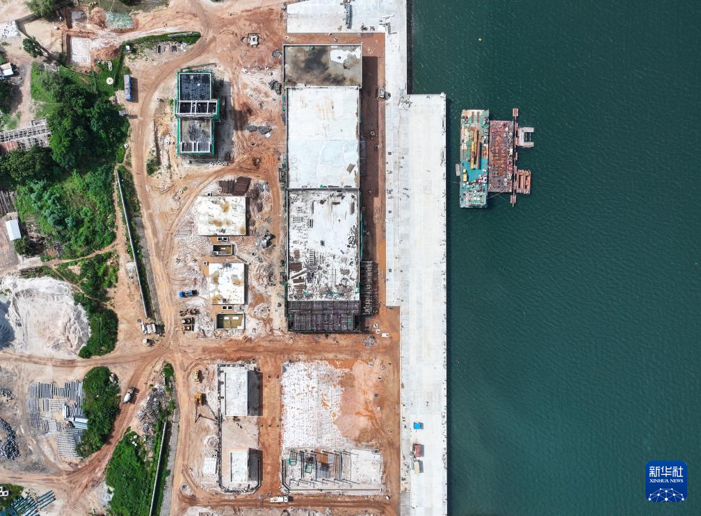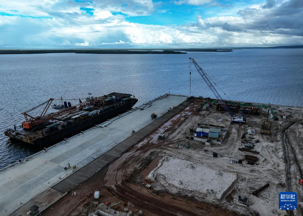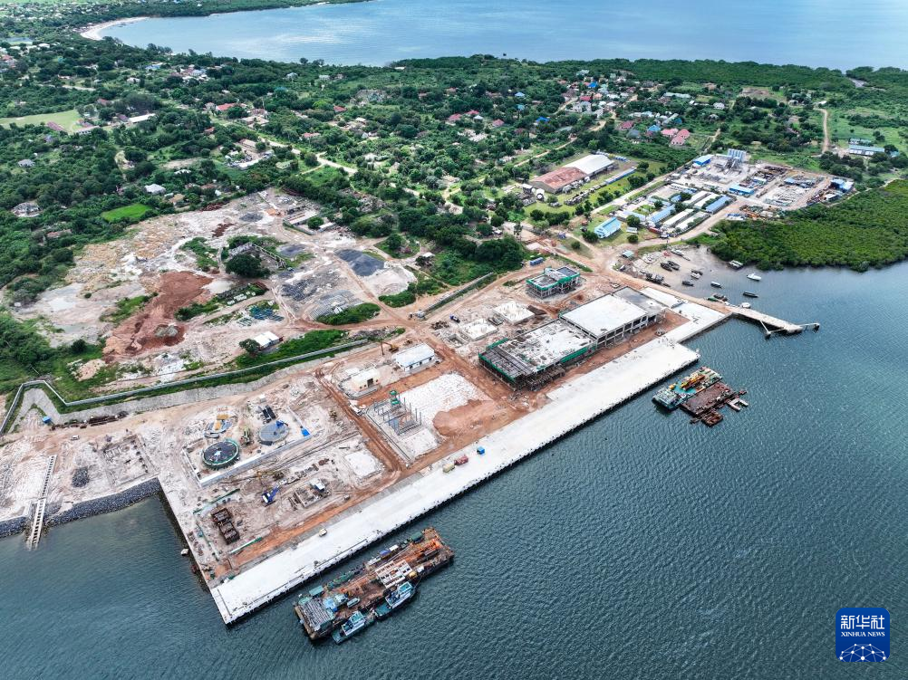 这是4月23日在坦桑尼亚东南部拍摄的基卢瓦渔港建设工地(无人机照片)。新华社记者 李亚辉 摄