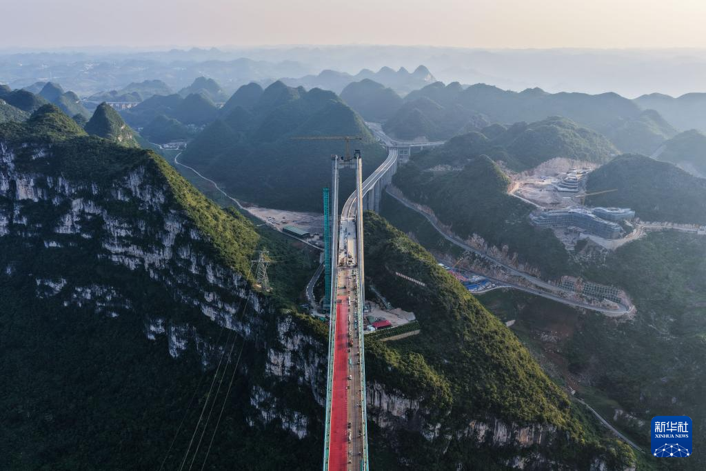 花江峡谷大桥是贵州六安高速公路的关键控制性工程,全长2890米,桥墩最大高度262米,主桥跨径1420米,于2022年1月正式开工。这座钢桁梁悬索桥建成后将成为新的世界第一高桥。