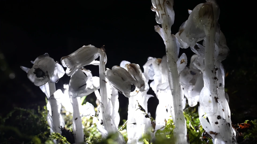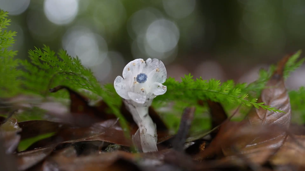 水晶兰通体洁白、晶莹剔透,属国家近危级珍稀植物,身为植物却不含叶绿素,无法进行光合作用,对自然生长环境要求苛刻,较为罕见。
