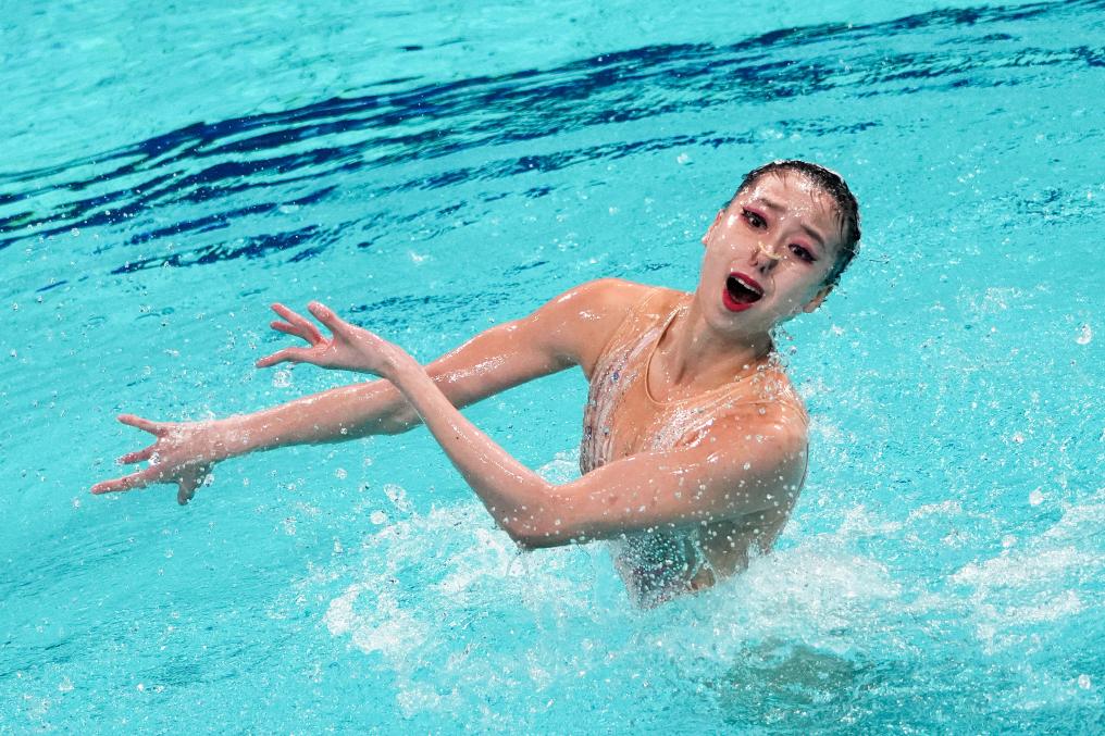 中国花游队教练员涂俊点评说,徐汇妍发挥出动作优美、舒展的技术特点,在水里的扭转和翻滚动作富有韧性。