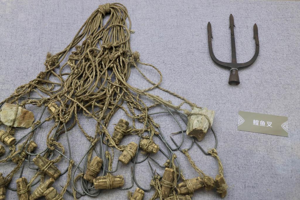 黑龙江省民族博物馆内的铁质三齿鳇鱼叉。新华社记者徐凯鑫摄
