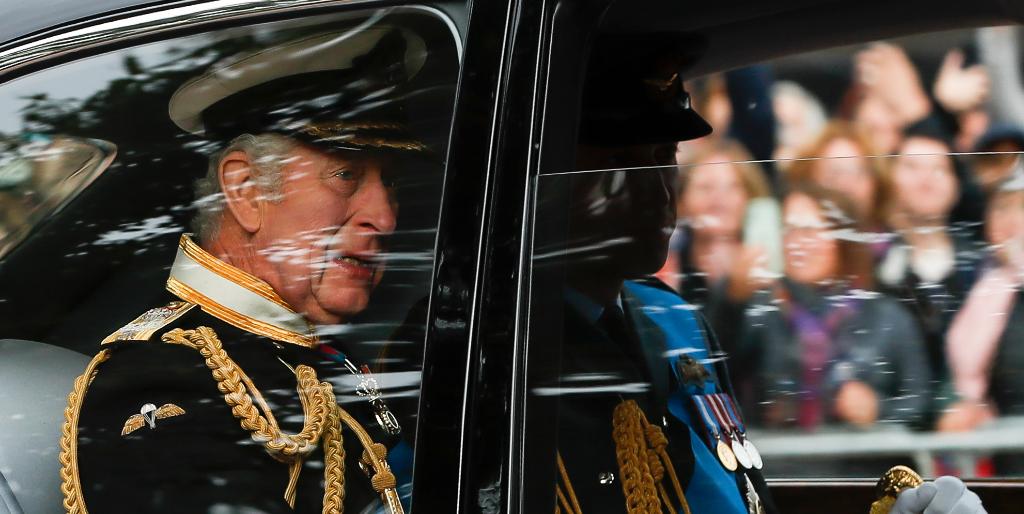 9月14日,在英国伦敦,英国国王查尔斯三世护送英国女王伊丽莎白二世的灵柩。