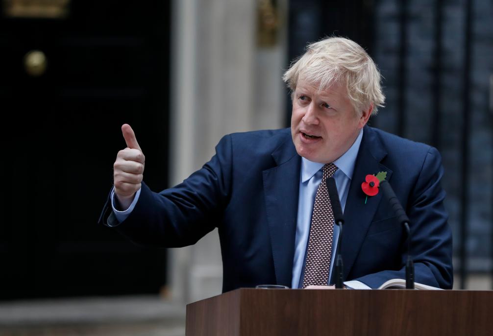 2019年11月6日,约翰逊在首相府门外发表讲话。