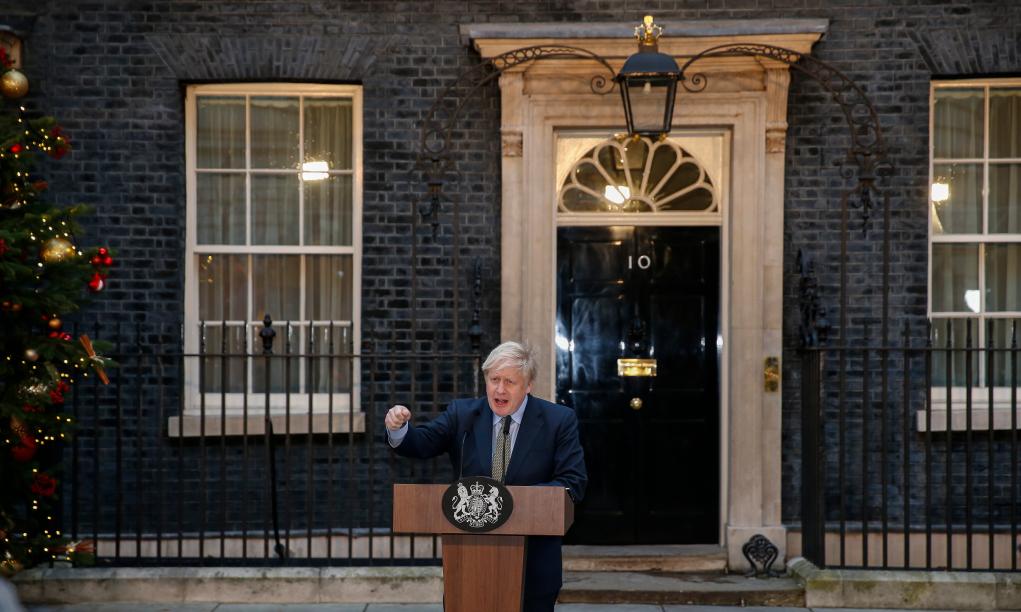 2019年12月13日,约翰逊在唐宁街10号首相府发表演讲。