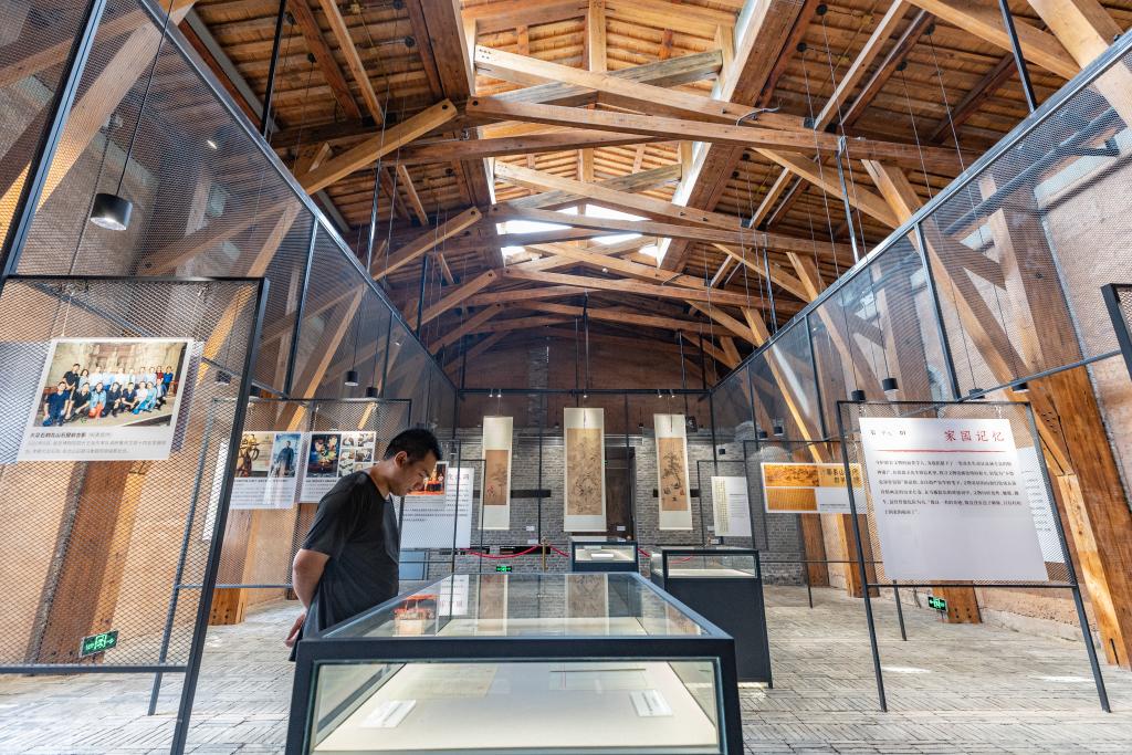 在重庆市南岸区,游客在重庆故宫文物南迁纪念馆展厅内参观。新华社记者 黄伟 摄