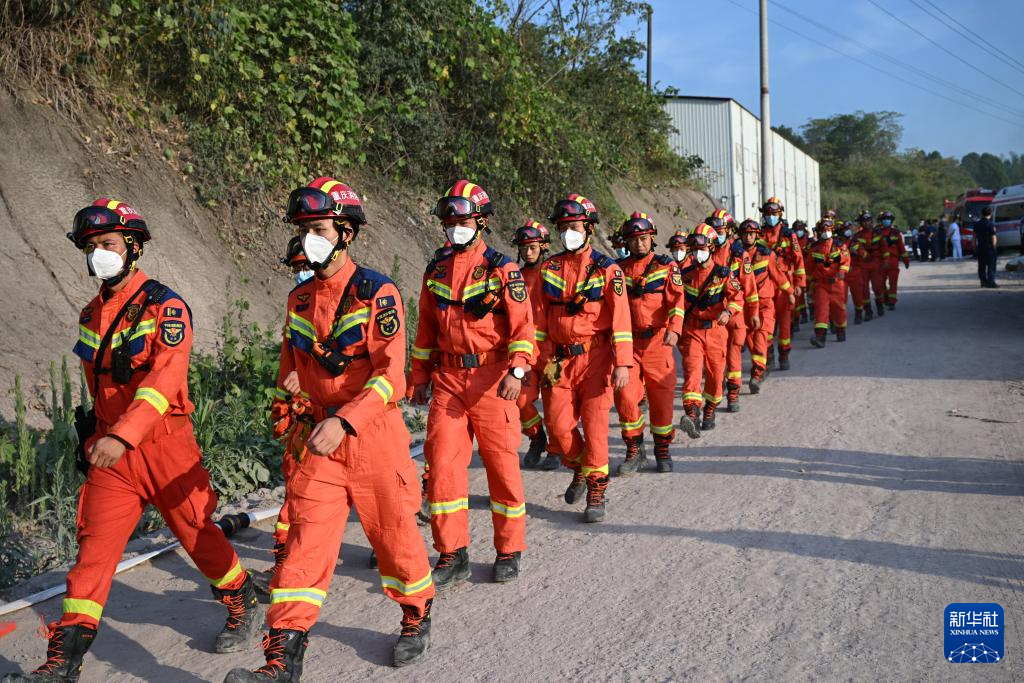 6月17日在发生事故的隧道入口附近拍摄的消防救援人员。新华社记者 陈诚 摄