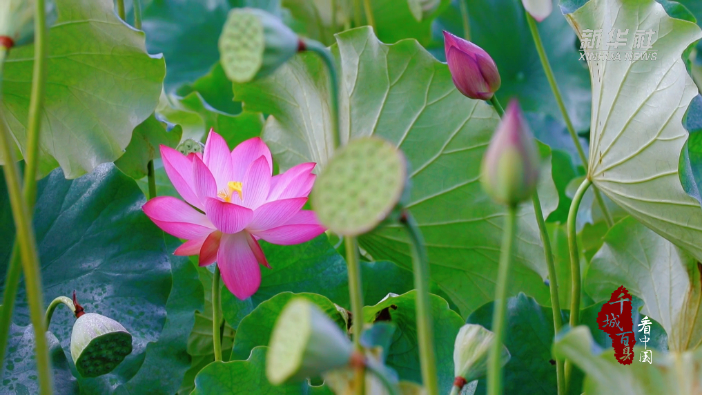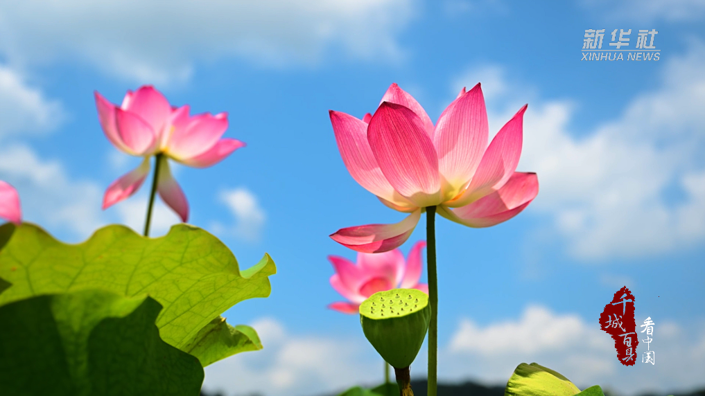 仲夏时节,福建省德化县葛坑镇龙塔村的荷花渐次盛开。粉红花朵似佳人罗裳,在风中轻摇。蜜蜂穿梭在碧绿荷叶间,忙碌地采集着花蜜,勾勒出一方生机盎然的清凉天地。