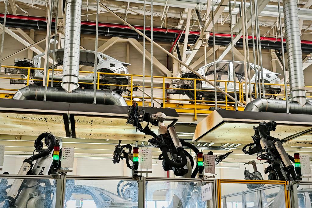 走进吉利汽车长兴生产基地,冲压、焊装、涂装、总装等生产线上,机器轰鸣不断、机械臂上下飞舞,不到一分钟下线一台车。工作人员介绍,目前整个工厂拥有近1000台工业机器人,生产自动化率已经实现100%。