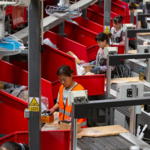 图为6月16日,在江苏省南通市通州区,工作人员在顺丰速递南通兴东转运中心的智能快递分拣流水线上作业。新华社发(翟慧勇摄)