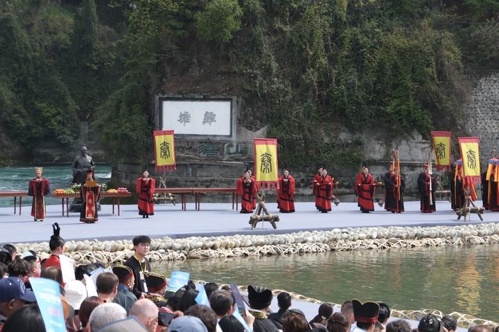 “东流不尽秦时水,西望长陪太守祠”。每年清明时节,都江堰都会举行极为隆重的典礼和祭祀活动,人们身着秦装汉服,以古法岁修的方式进行清淤、疏浚、放水,以纪念兴修都江堰的蜀郡太守李冰,并祈福风调雨顺、国泰民安。据考证,这一民间习俗沿袭了近2000年。唐代时,活动升格到国家层面。到了清朝,官民对李冰的纪念达到顶峰。