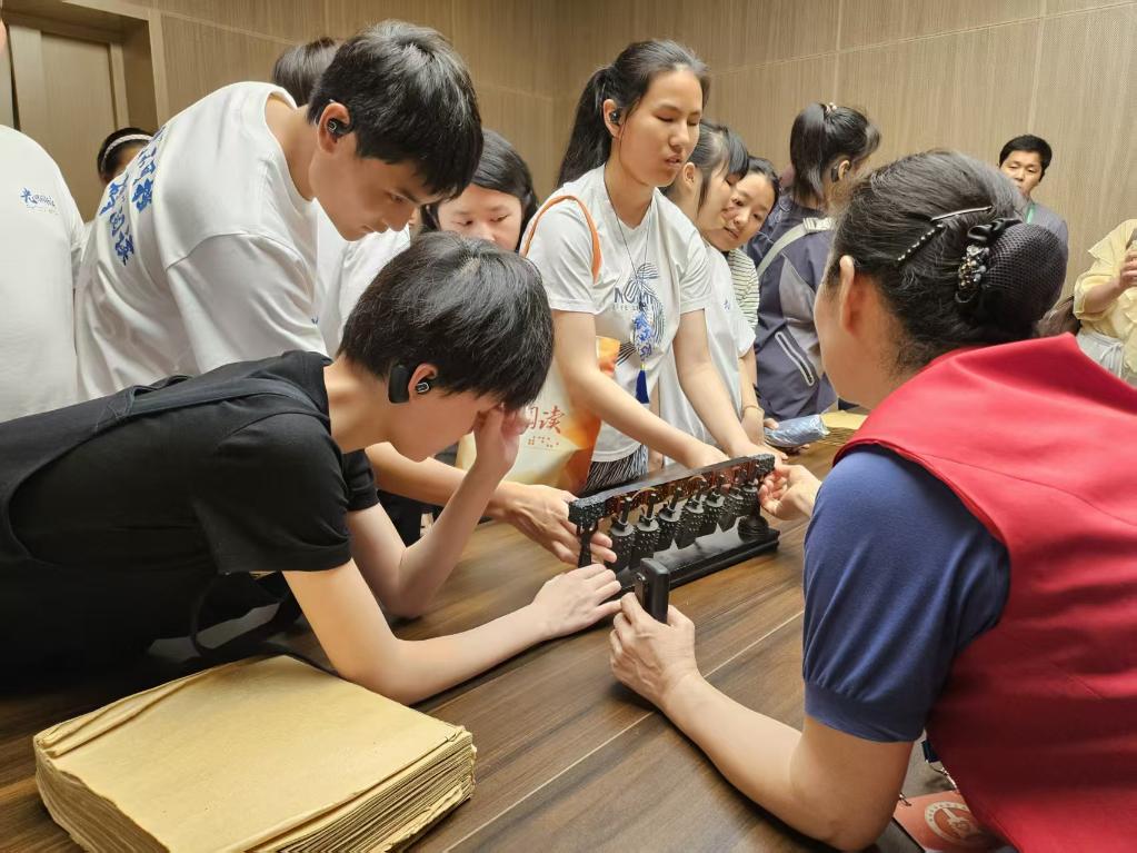 6月19日,第四届视障读者“光明阅读”邀请赛决赛选手在湖北省博物馆触摸编钟微缩模型。(许筠摄)