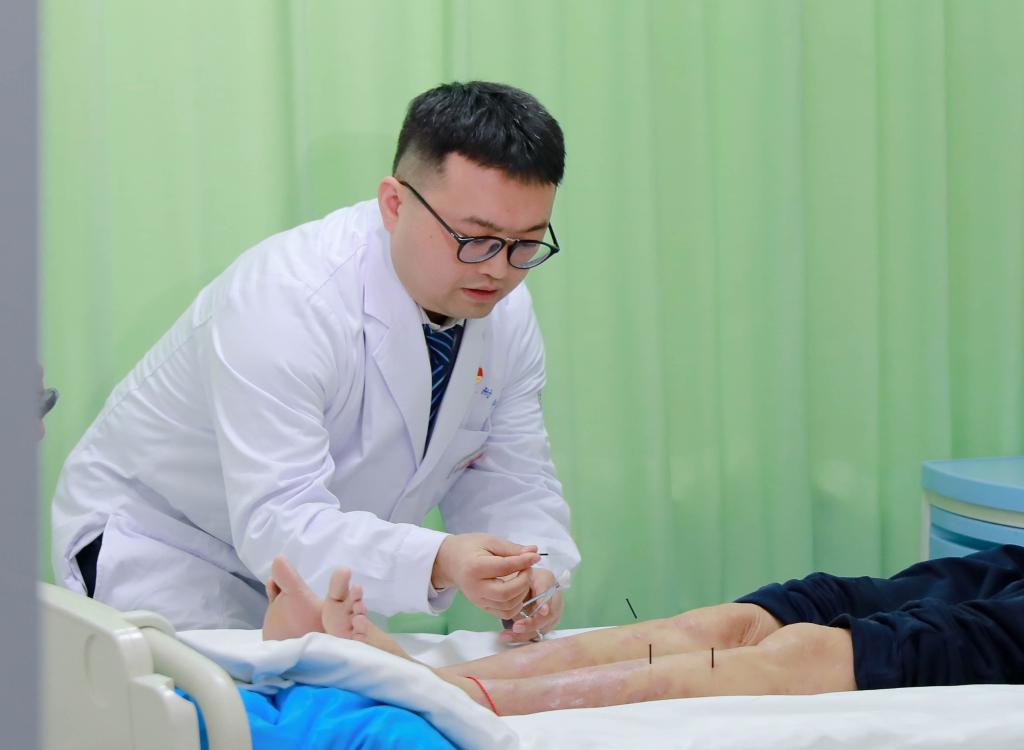 西安交通大学第二附属医院中医科副主任医师安鹏为患者进行针灸。新华社发