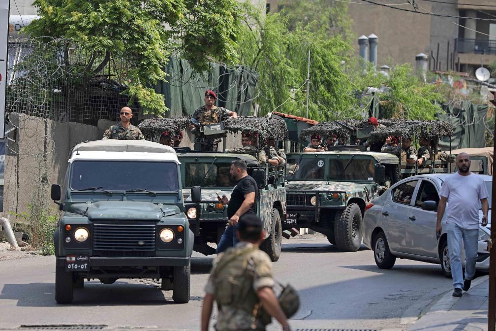 2024年6月5日,位于黎巴嫩首都贝鲁特北部的美国驻黎巴嫩大使馆遭到枪击。图为当天士兵在美国驻黎使馆附近戒备。新华社发(比拉尔·贾维希摄)