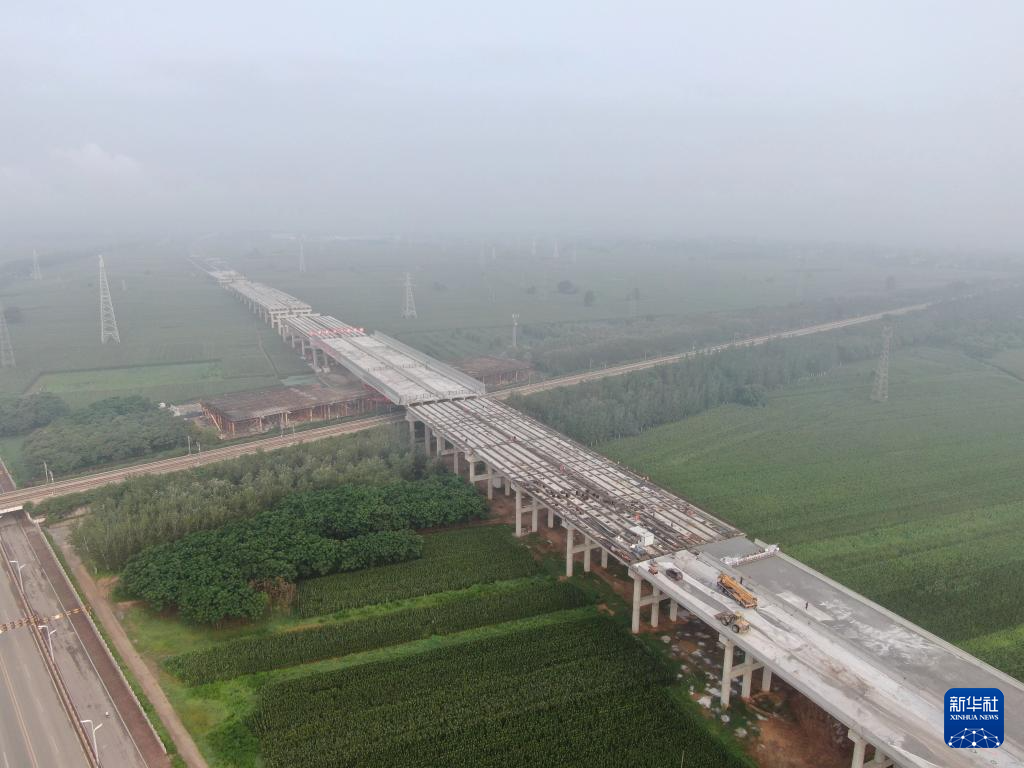 8月13日拍摄的完成转体的桥梁(无人机照片)。新华社发(徐辉 摄)