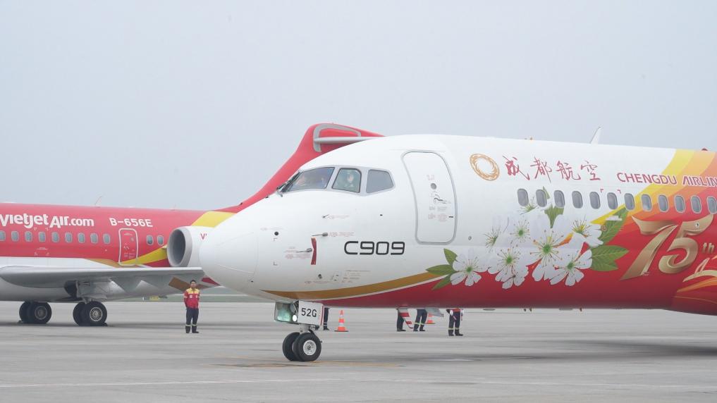 截至目前,印尼翎亚航空、老挝航空、越南越捷航空三家海外航司在东南亚地区运营7架C909飞机,开通15条航线,通航18座城市,累计运送旅客超37万人次。
