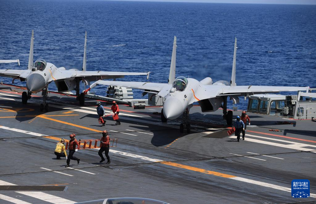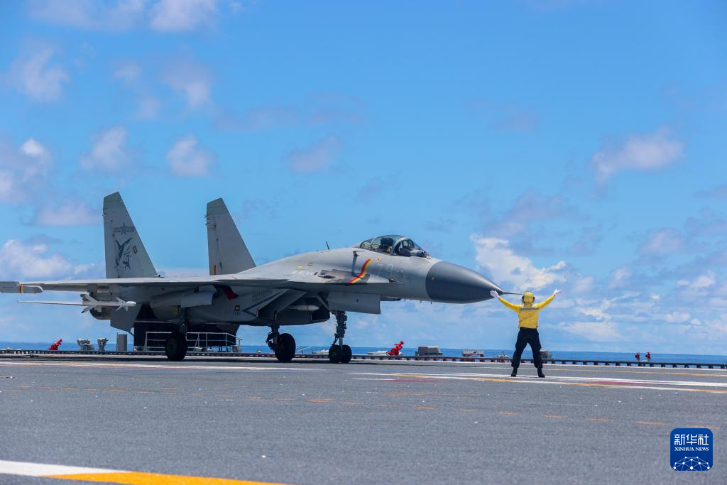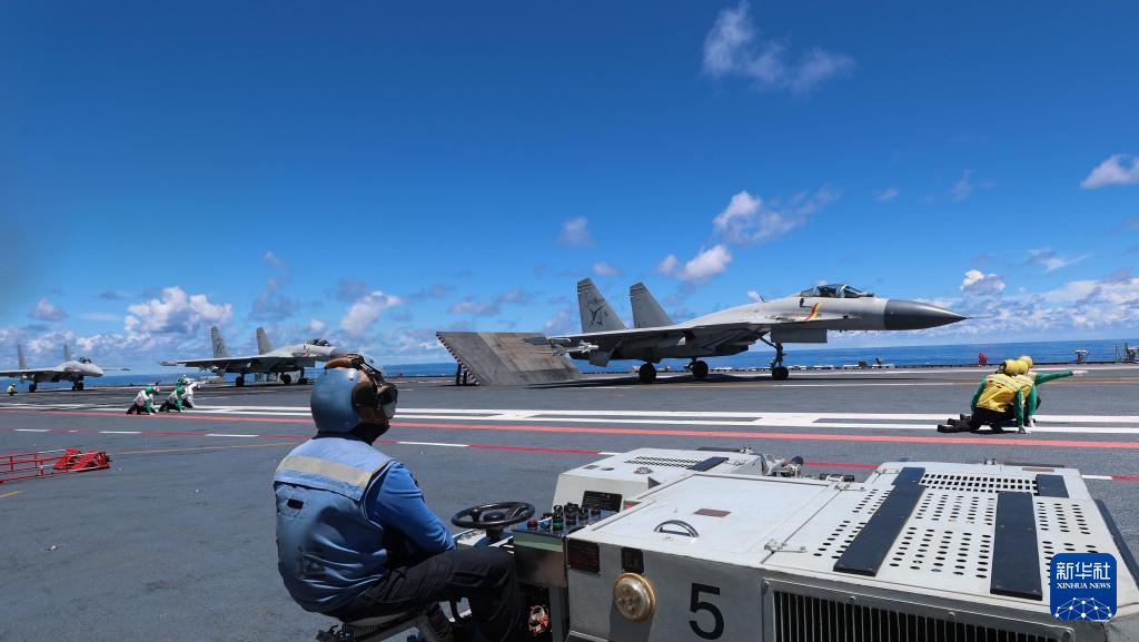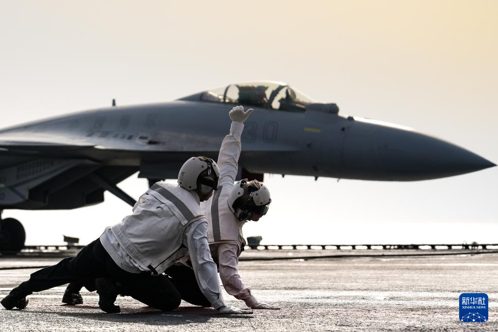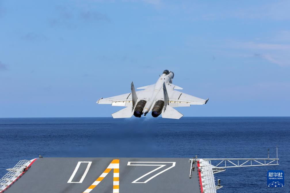 这是山东舰组织舰载战斗机起飞。新华社发(扈秀帅 摄)