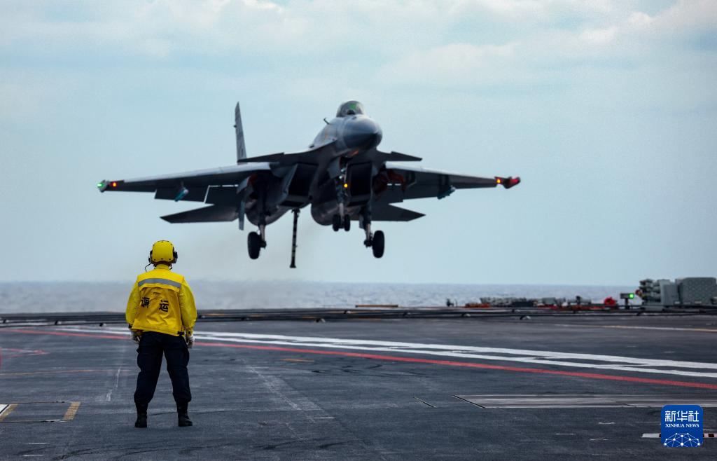 这是舰载战斗机着舰。新华社发(王园林 摄)