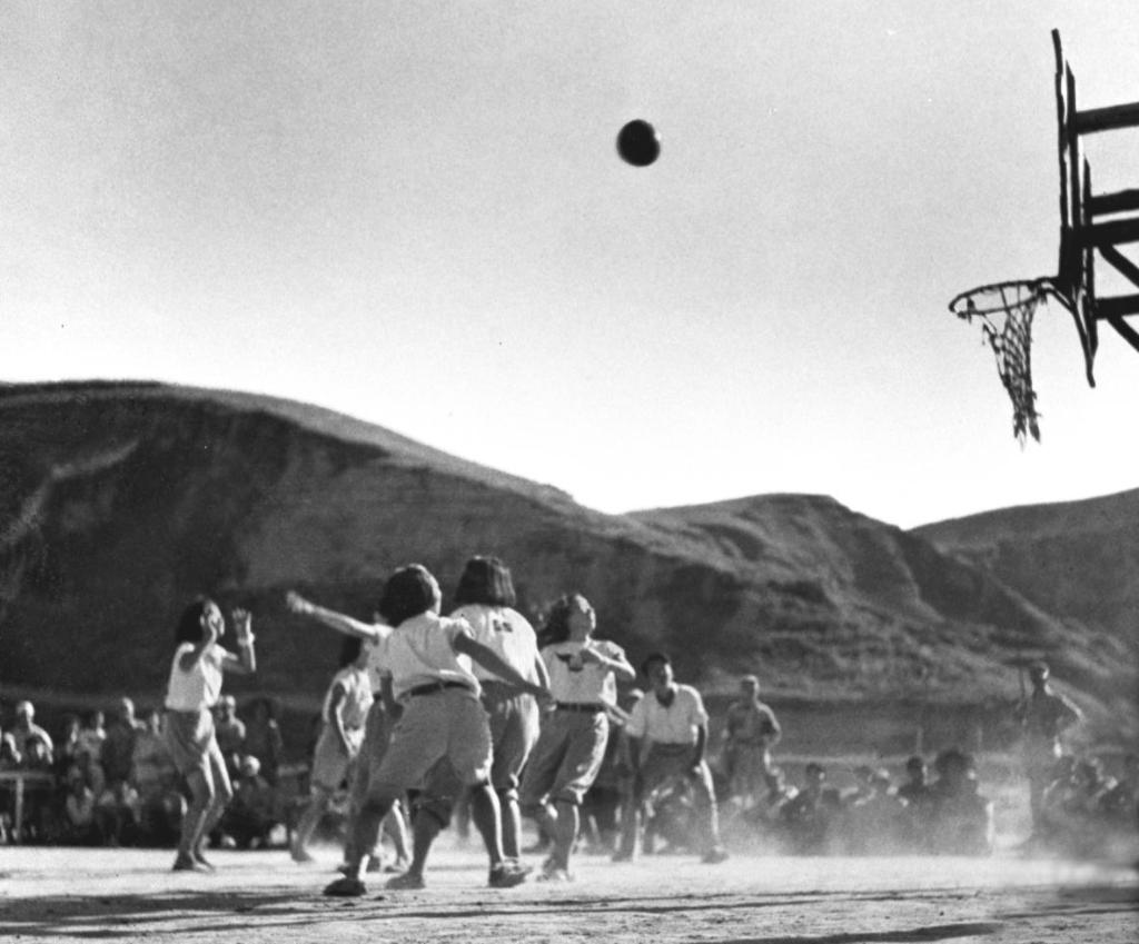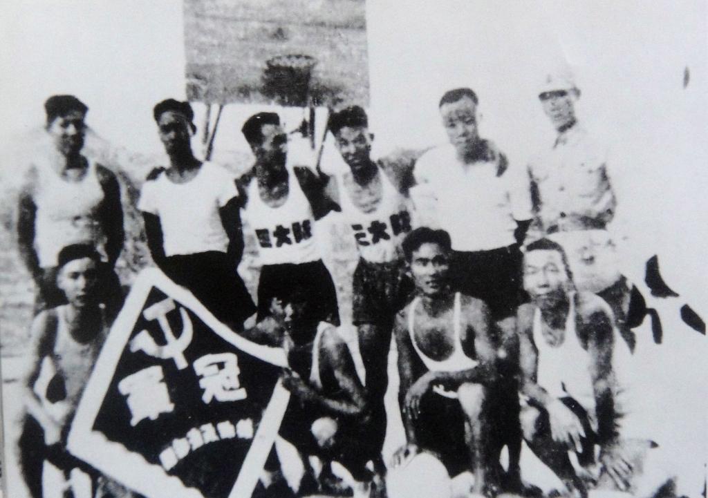图为在“八一”抗战动员运动大会中获得冠军的抗大篮球队