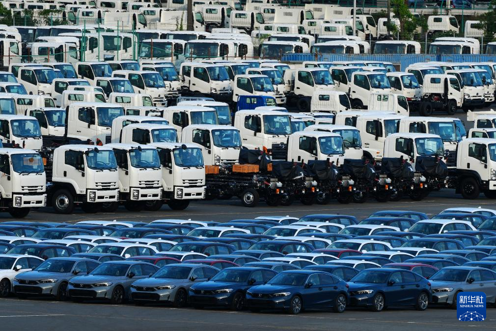 这是7月3日在日本横滨一处港口拍摄的待售车辆。新华社记者 贾浩成 摄