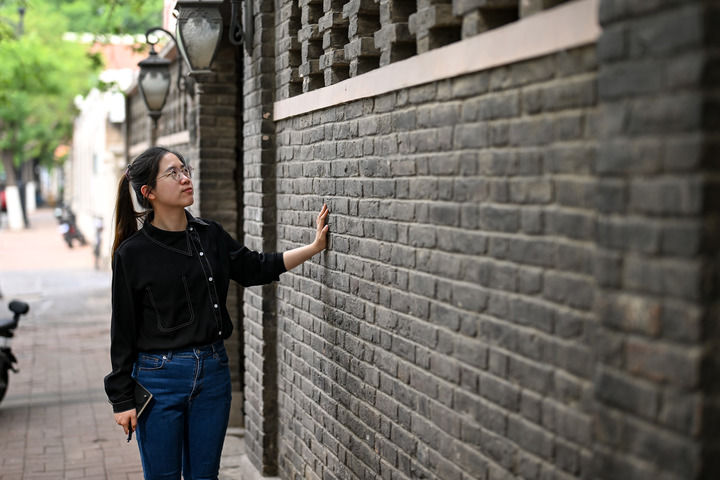 5月8日,杨雅丽在天津五大道参观历史文化街区。新华社记者 张铖 摄