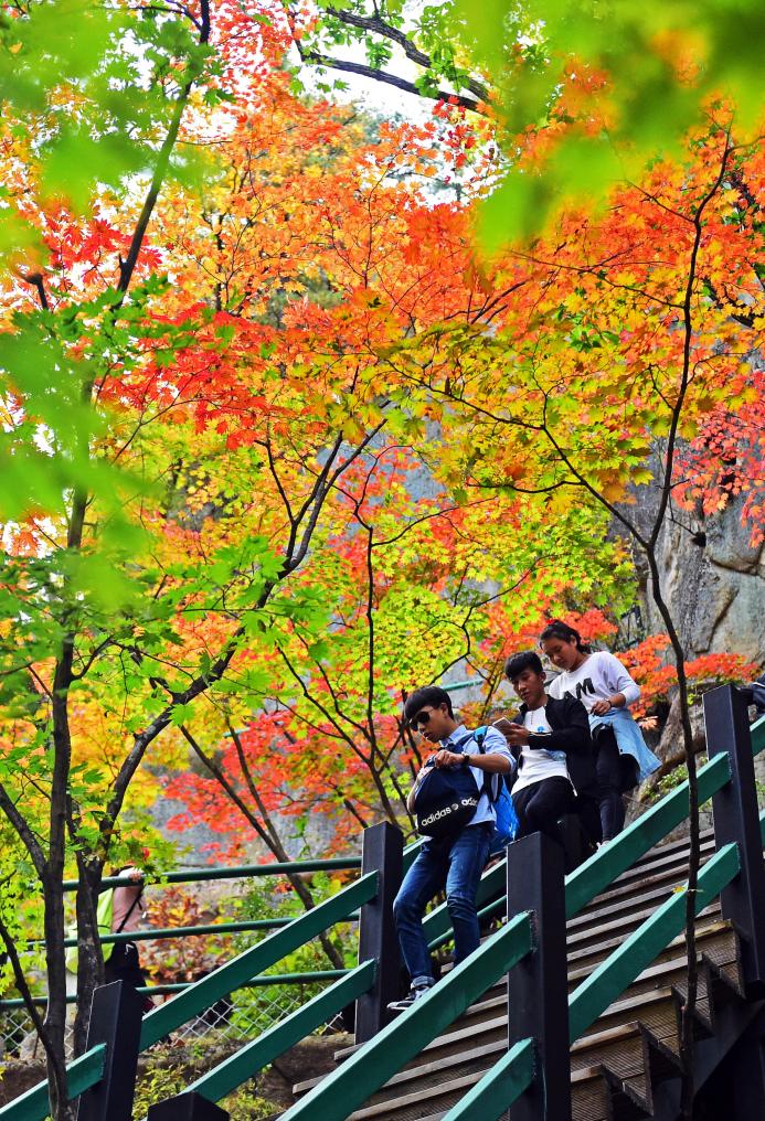 游客在枫林谷景区游玩。新华社记者杨青 摄