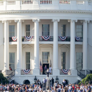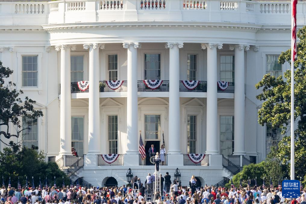 7月4日,在美国首都华盛顿白宫,美国总统特朗普发表讲话。新华社记者 胡友松 摄