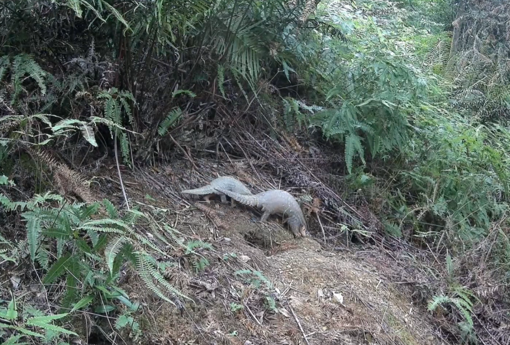 2025年6月,广东新港省级自然保护区拍摄到中华穿山甲带幼崽觅食的画面。(广东省林业局供图)