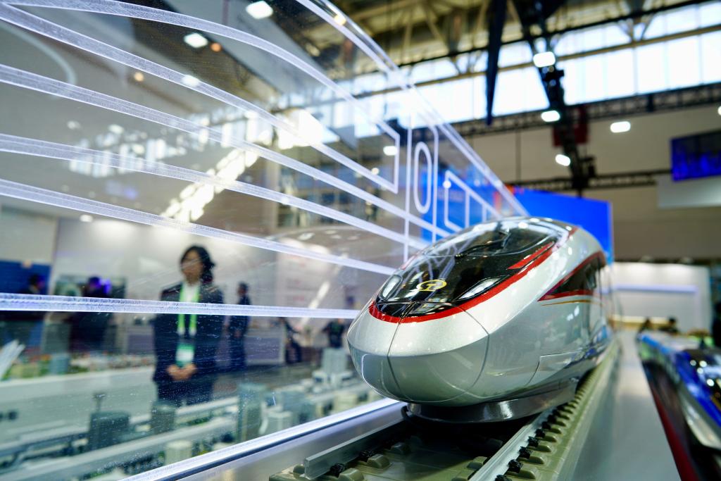 2024年11月27日在第二届中国国际供应链促进博览会先进制造链展区中国中车展台拍摄的“CR400BF-Z复兴号智能动车组”模型。新华社发(那宇奇 摄)